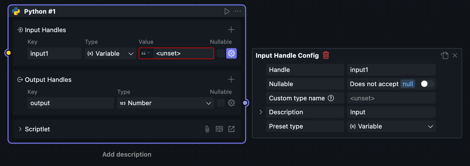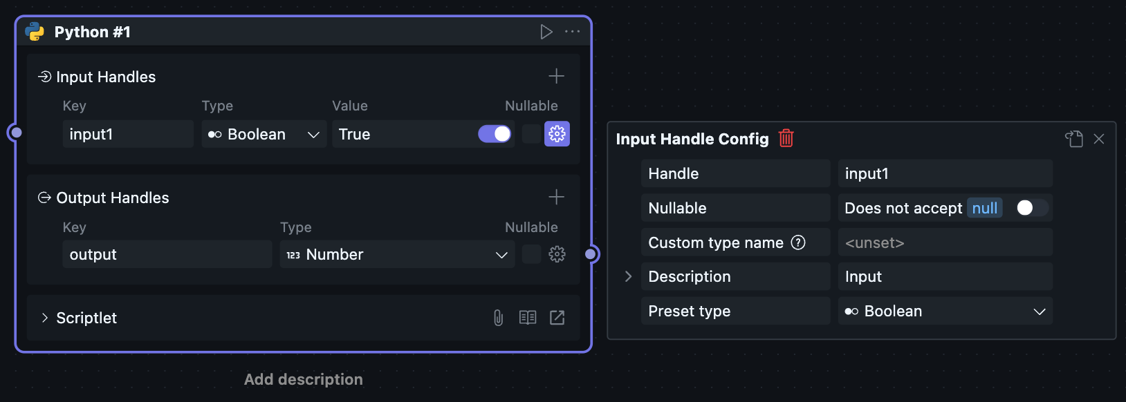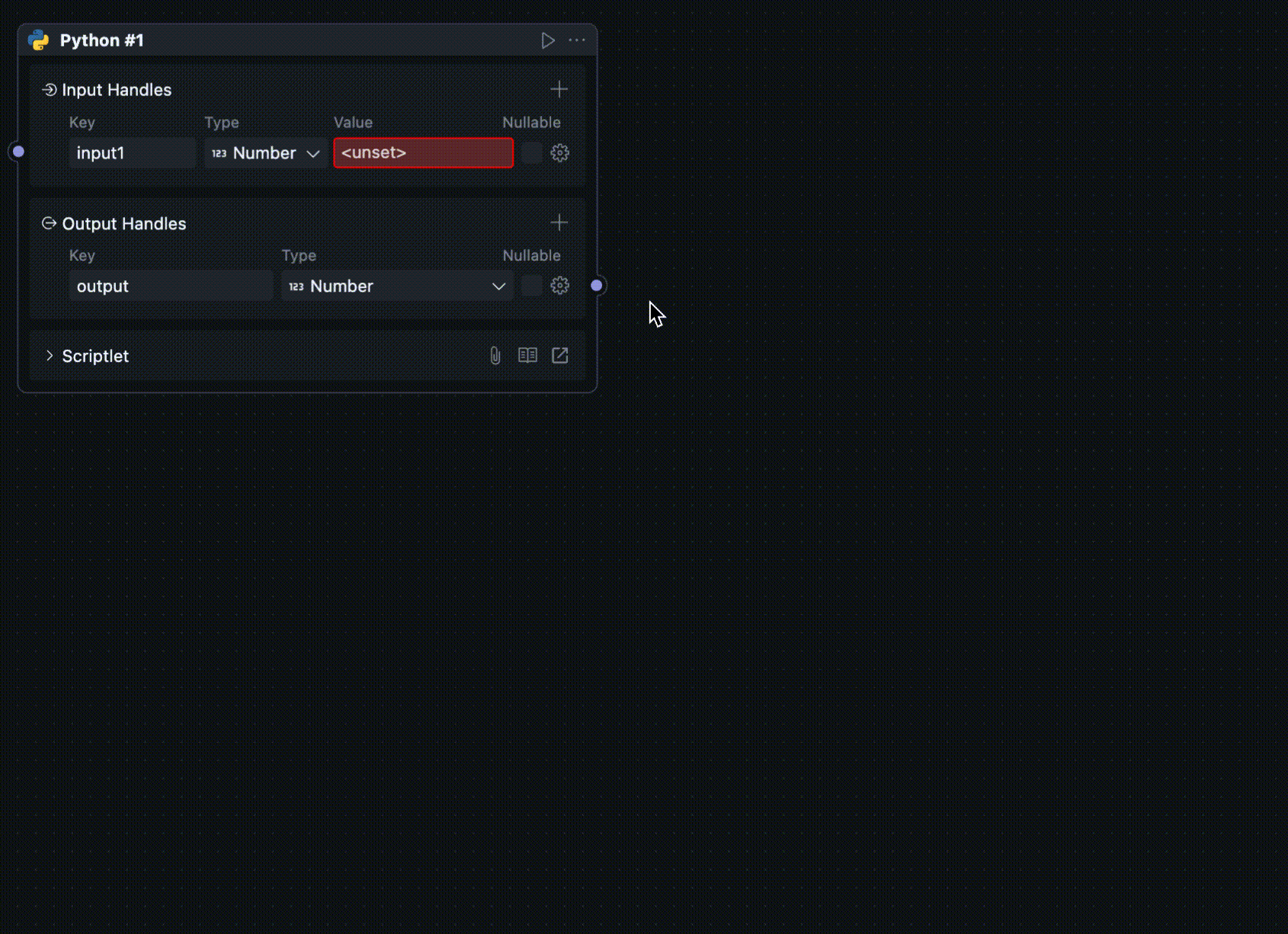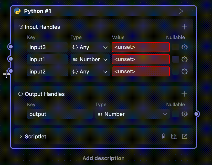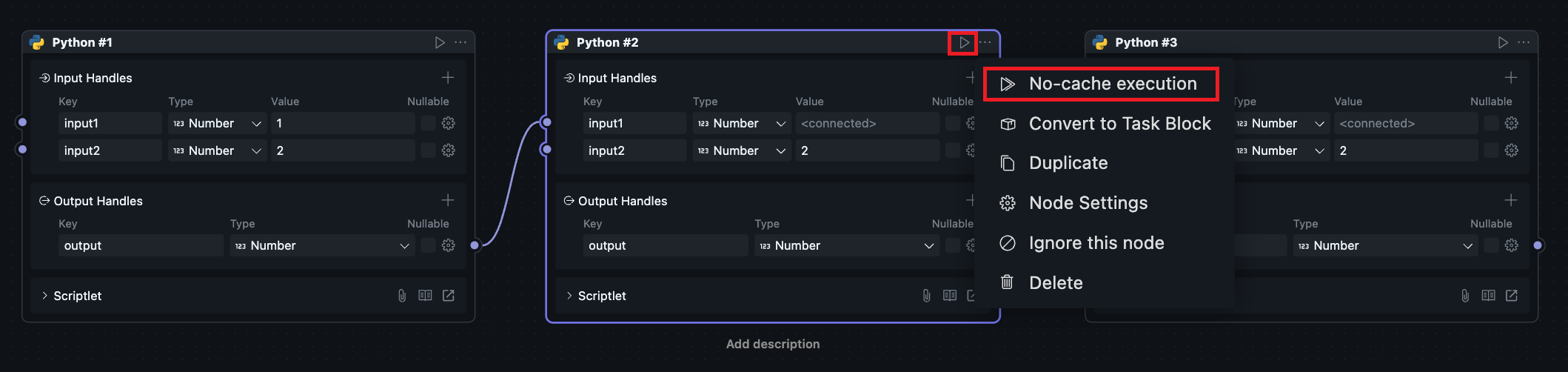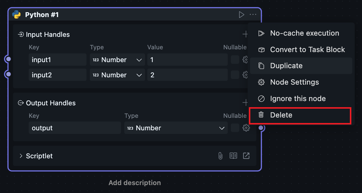 当一个区块被放进工作流中使用时,它会以“节点”的形式出现,此时对应的节点菜单也会可用。