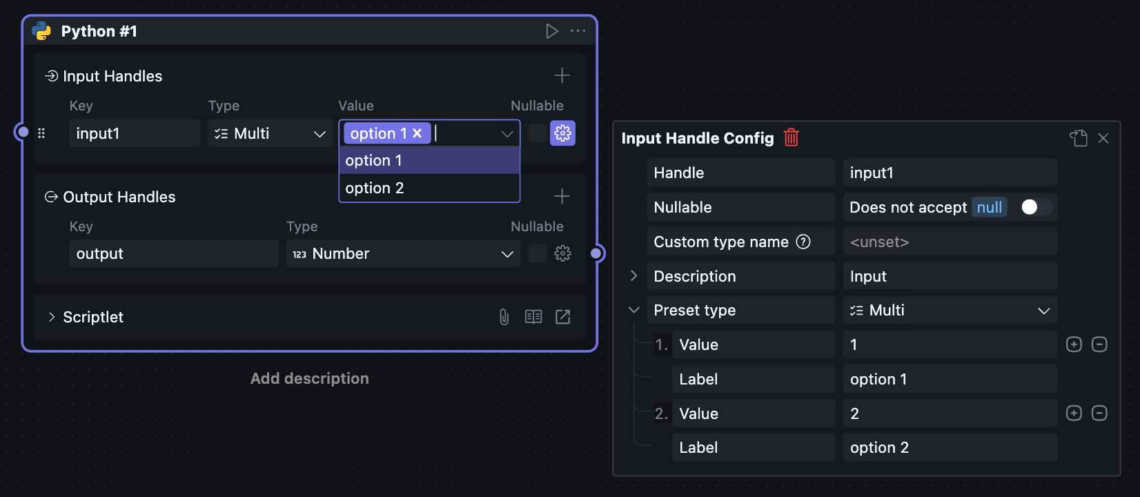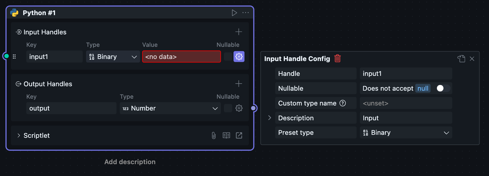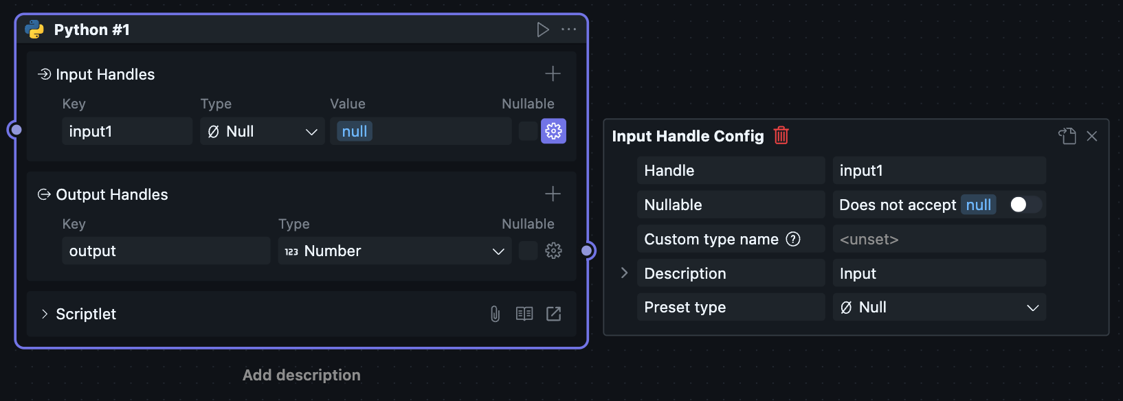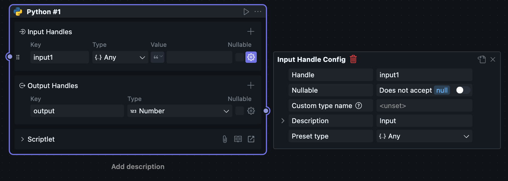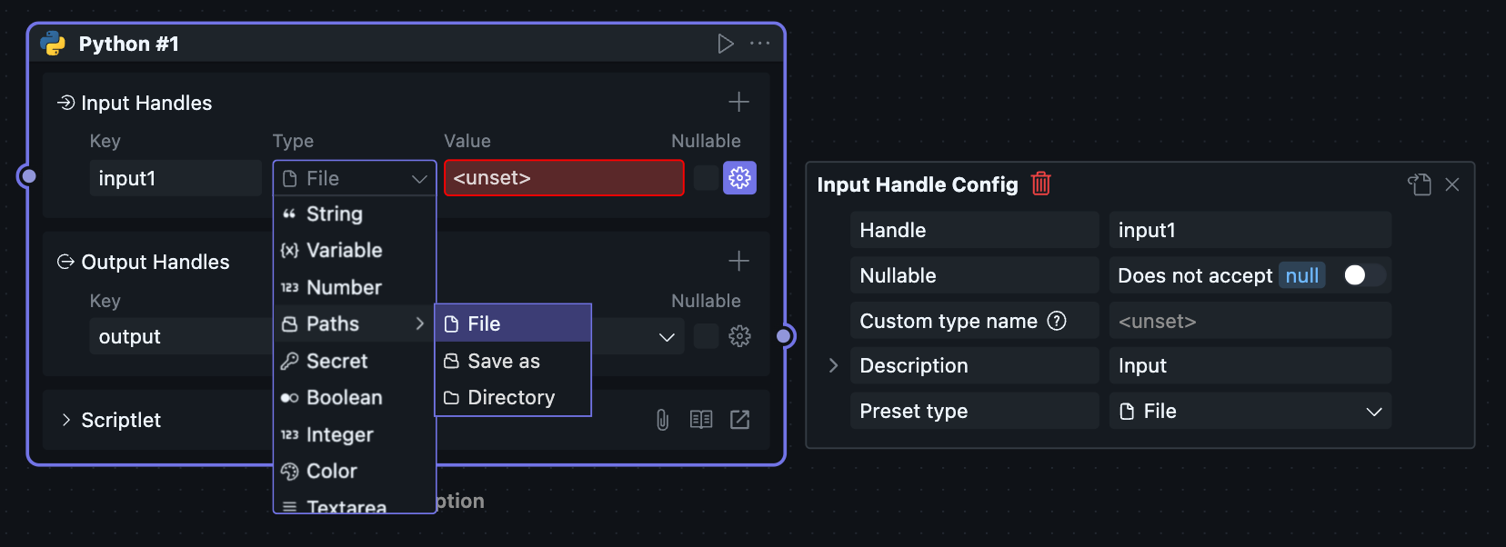 当一个区块被放进工作流中使用时,它会以“节点”的形式出现,此时对应的节点菜单也会可用。