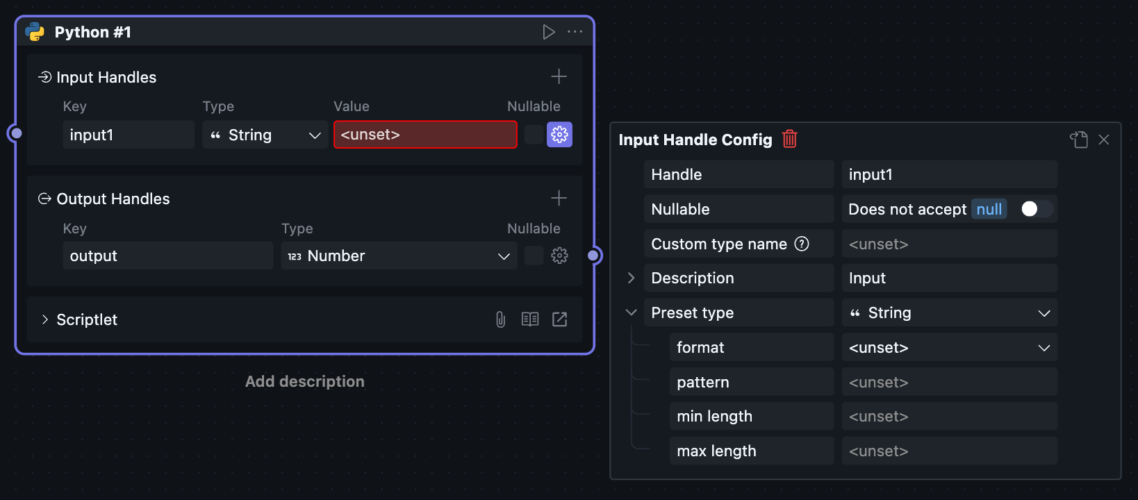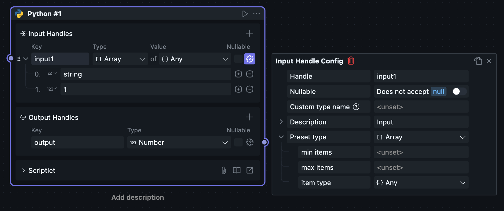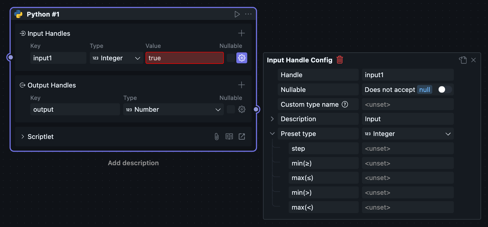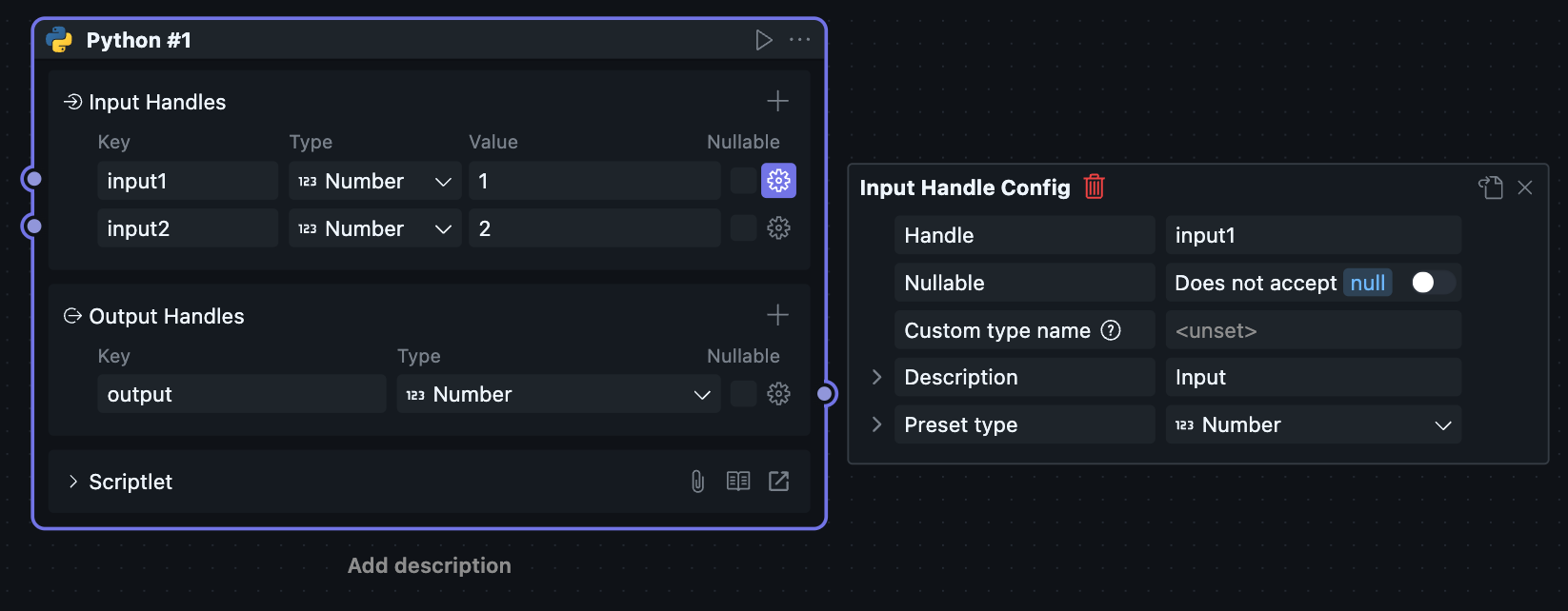 当一个区块被放进工作流中使用时,它会以“节点”的形式出现,此时对应的节点菜单也会可用。