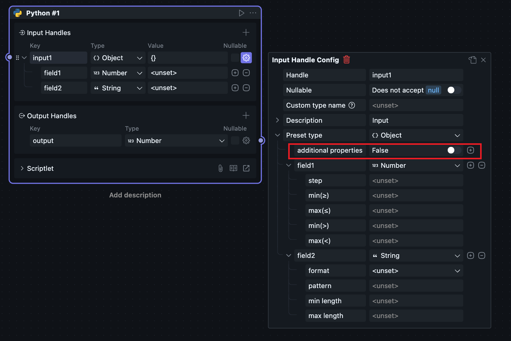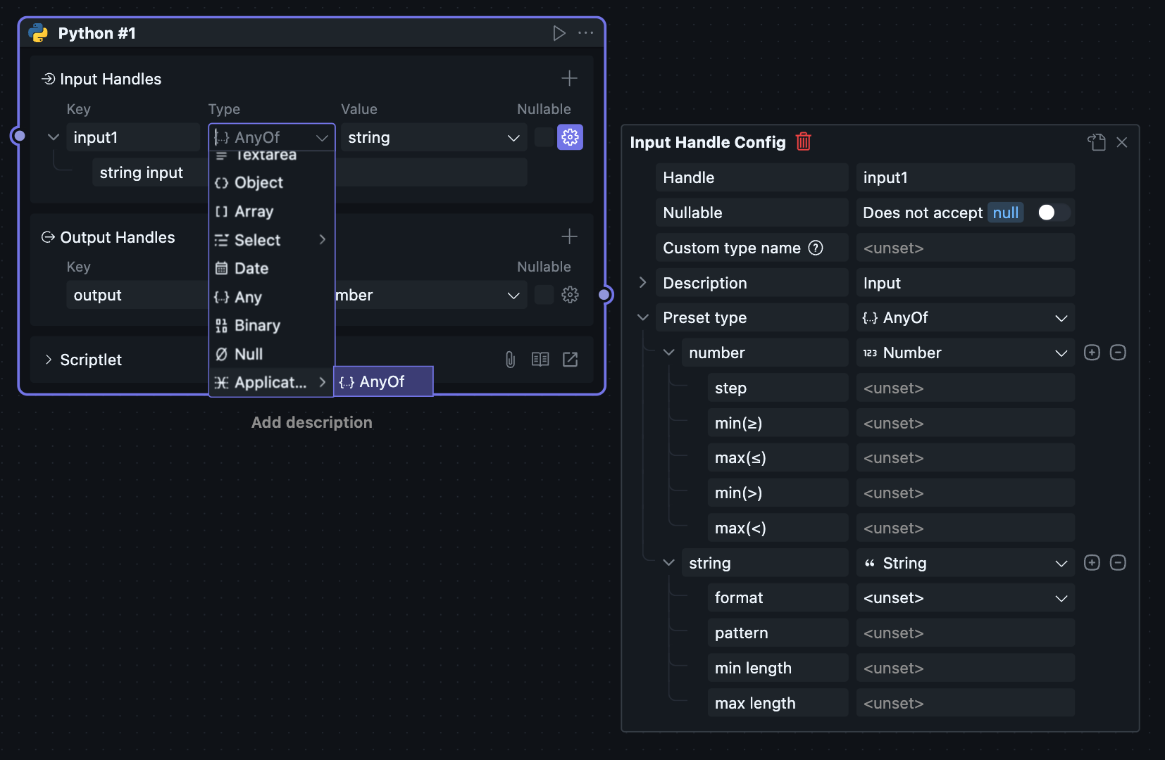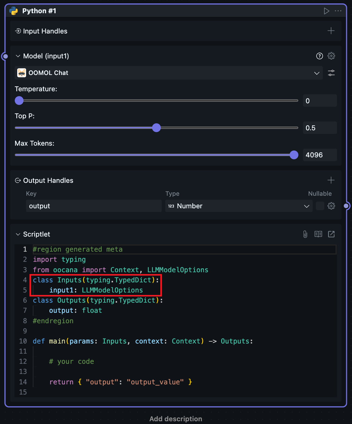 选择 model 后可以看到输出接口类型改变,用户此时可以在 input 接口中获取在界面上配置的模型参数。