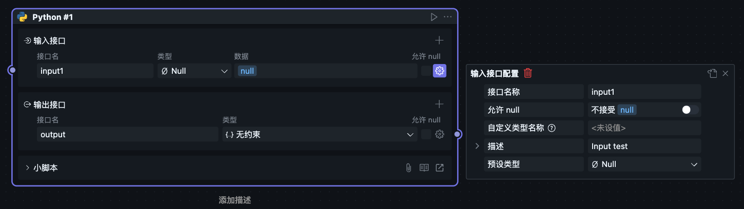因为小脚本区块只能在工作流中创建并使用,因此小脚本的区块同时拥有节点和区块两种属性,导致小脚本的节点配置和区块配置合并到了一起。