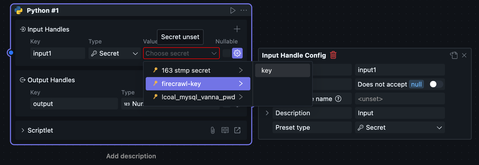 考虑到用户可能在某些场景下使用诸如 API Key 之类的私密字符串,我们提供了密钥功能,以防止敏感信息泄露。