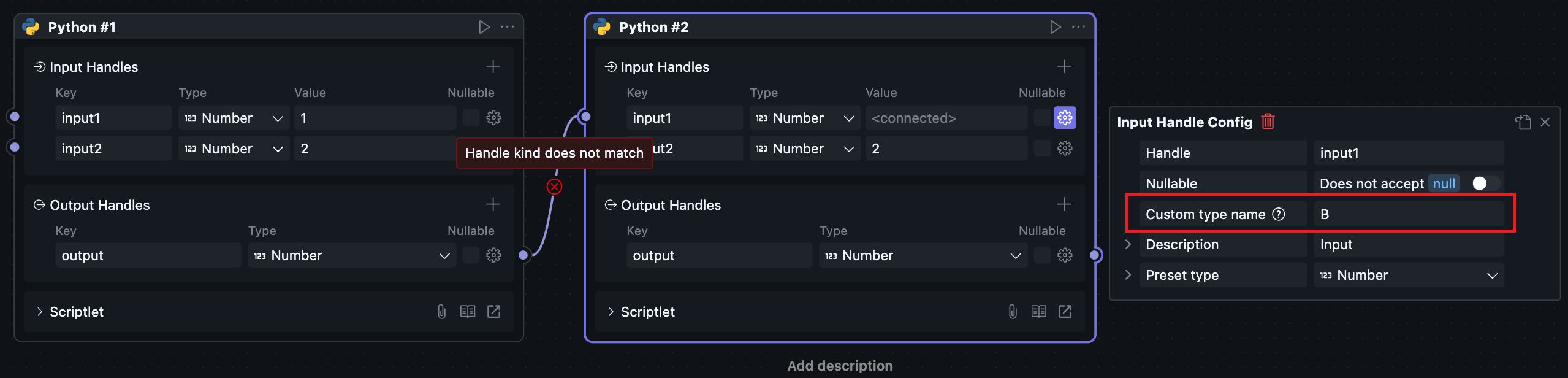 对于变量类型的接口,连接的另一个接口必须是相同语言而且是变量类型,如果有一边是共享区块,那么另外一边需要是同一个包中的区块。