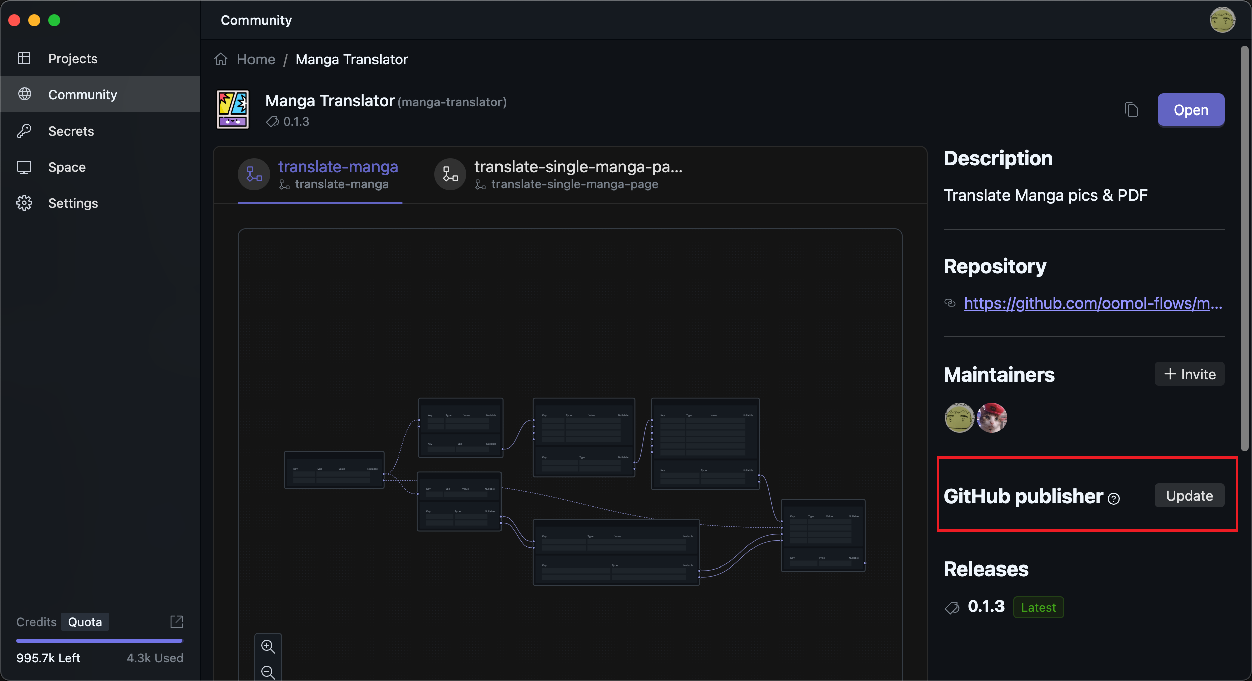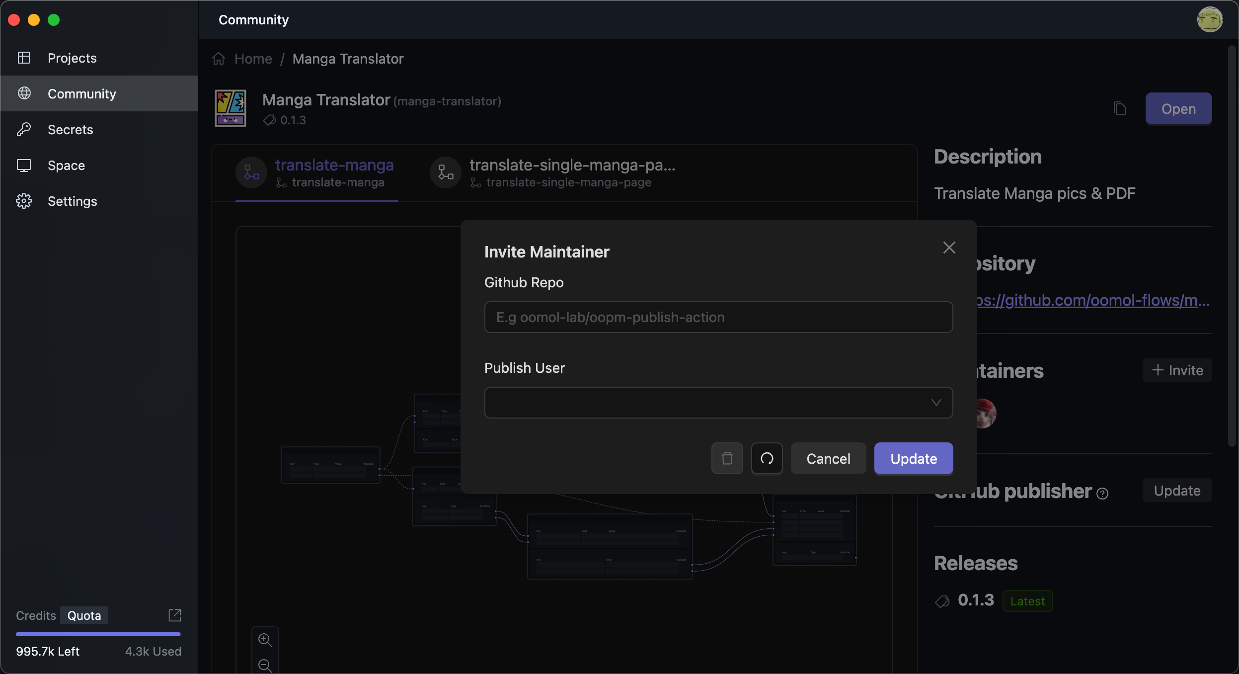 OOMOL Studio 支持配置 Github Action 来监听代码变化,当代码有变化的时候自动触发发布行为。
