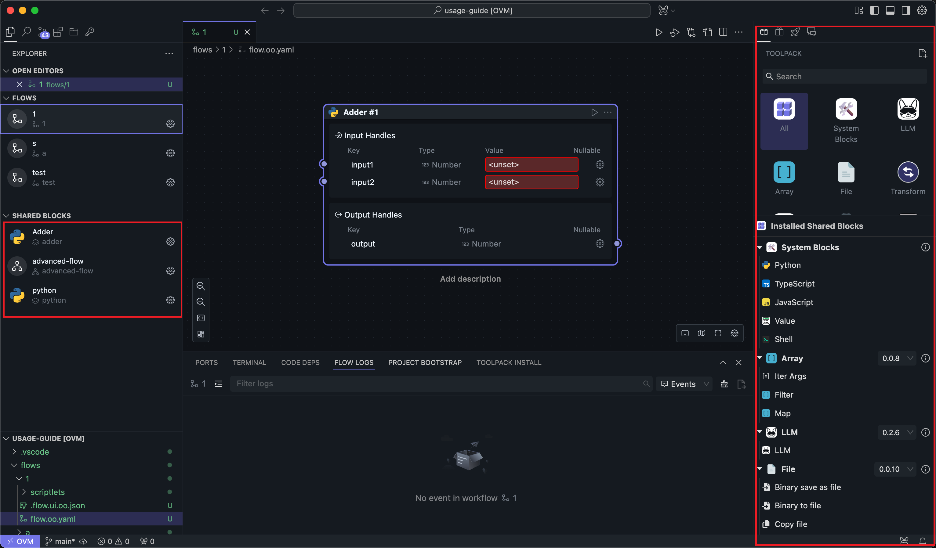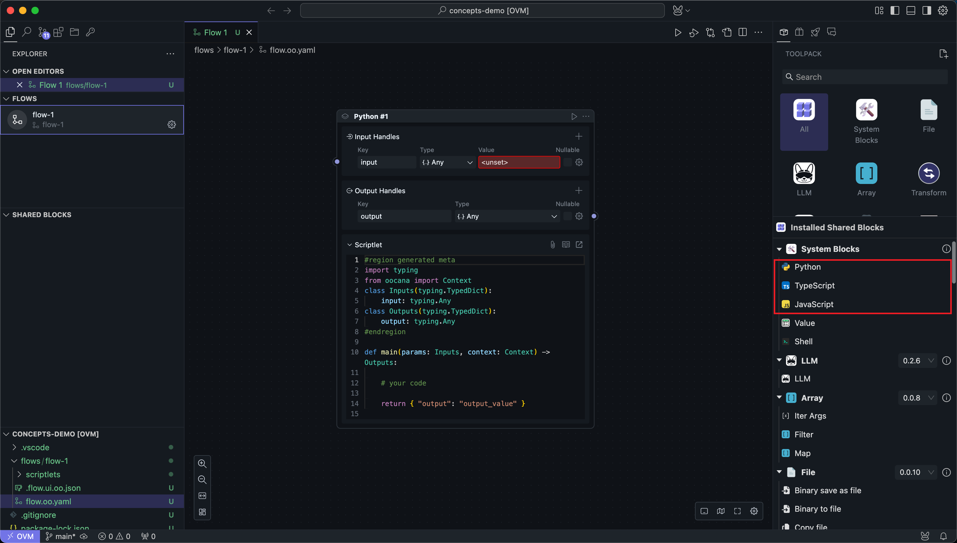 区块是最基本的运行单位,它本质上就是一串代码,OOMOL Studio 将这些代码以区块的形式封装起来,方便用户可以随意组织和复用。