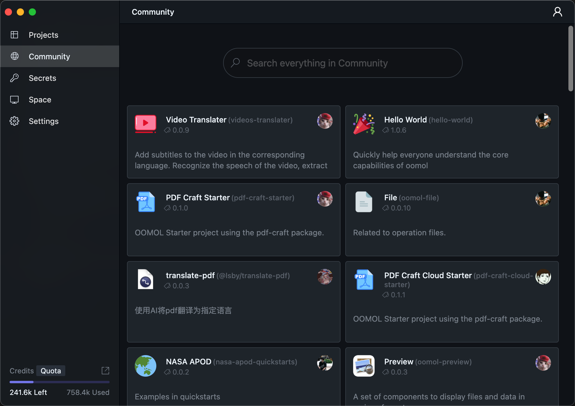如果发布到云端,那么所有 OOMOL 用户都可以看到并下载这个包: