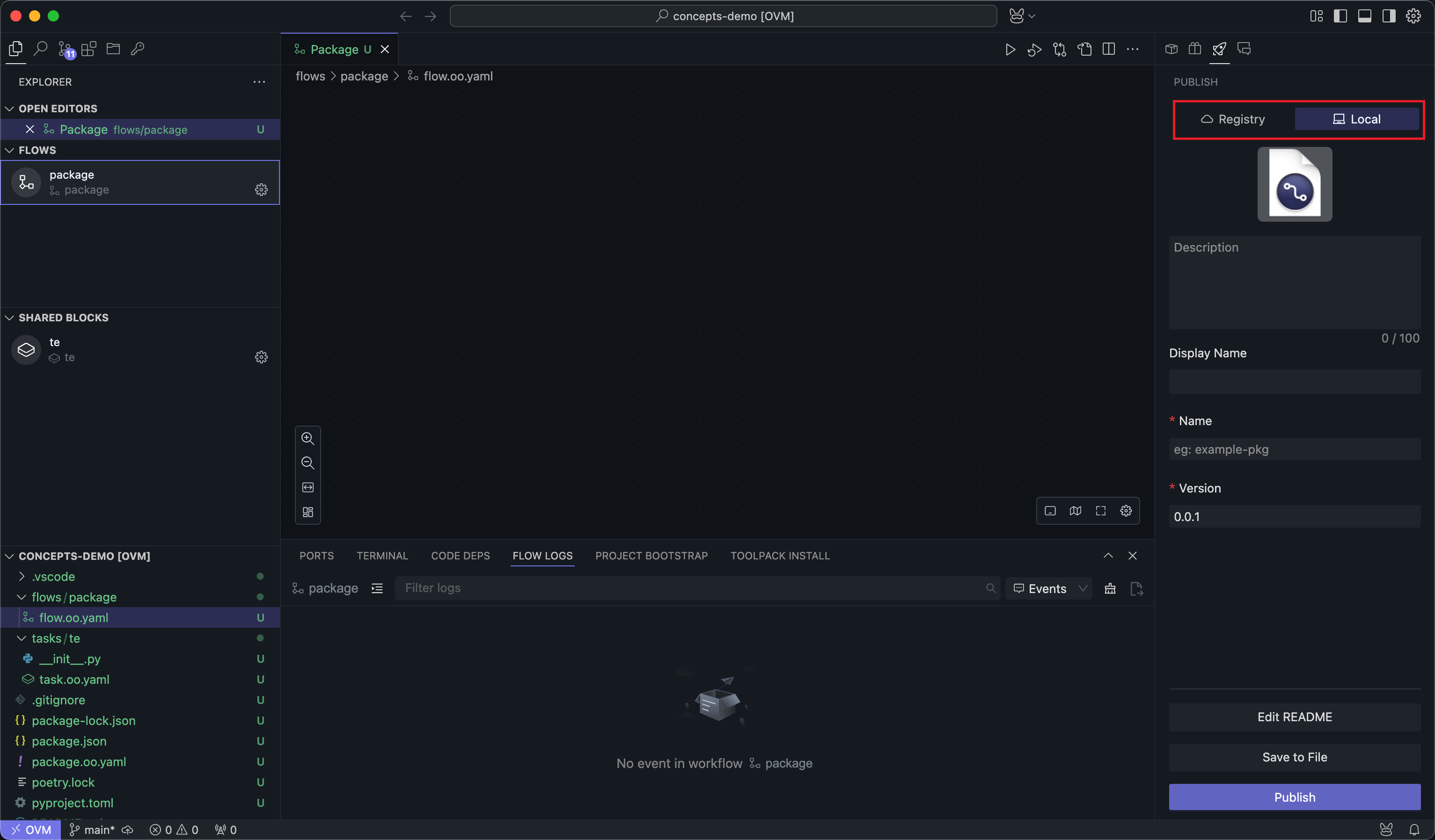 当你开发的流或者区块实现的功能可以被其他项目或者用户复用的时候,你可以选择将这些内容发布为一个包。