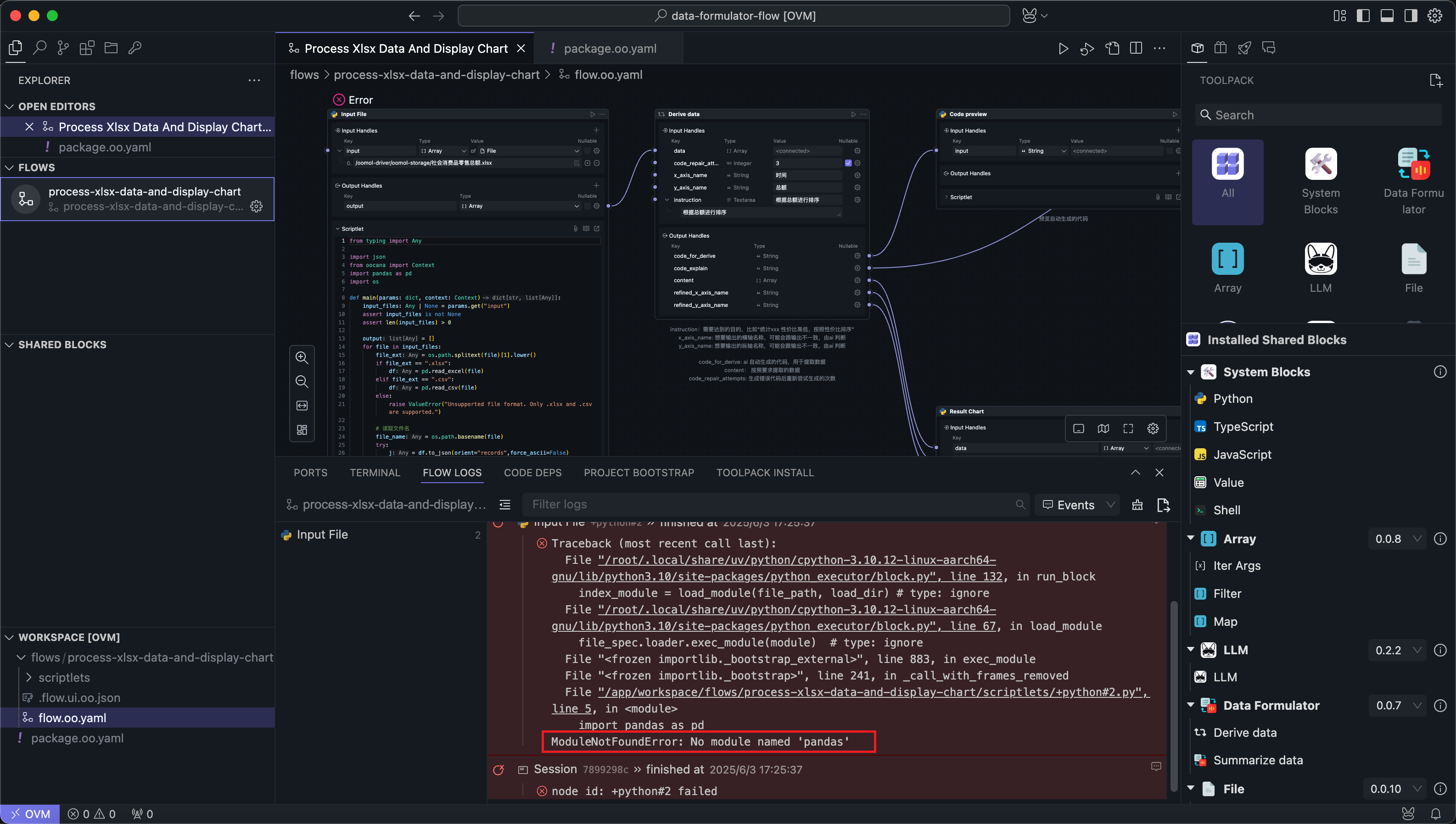 用户在打开了一个社区项目后,发现其中的流使用了小脚本,在运行时却发现小脚本区块依赖的模块找不到。